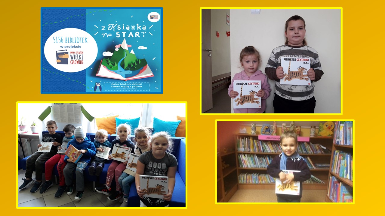 „Pierwsze czytanki” oraz „Książką połączeni” to pakiet książek przygotowany przez Instytut Książki dla uczestników akcji czytelniczej „Mała książka – Wielki człowiek” tj. dla dzieci w wieku 3 – 6 lat oraz ich rodziców i opiekunów. Przypominamy, że dzieci oprócz książki otrzymują Kartę Małego Czytelnika, a za każdą wizytę w bibliotece naklejkę poświadczającą wypożyczenie książki. Po zebraniu dziesięciu punktów dziecko będzie uhonorowane specjalną odznaką, a także imiennym dyplomem Małego Czytelnika. Naszym pierwszym odbiorcom książek i kart gratulujemy i życzymy miłej lektury, rodziny z małymi dziećmi zachęcamy i zapraszamy do odwiedzania bibliotek i punktów bibliotecznych celem przyłączenia się do wspólnej zabawy.